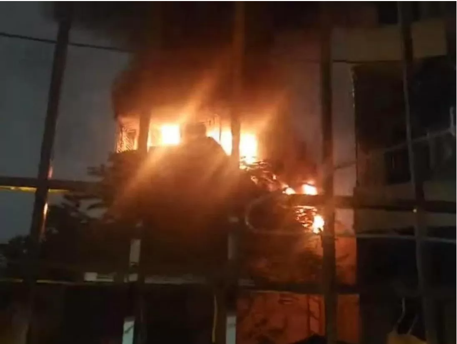 Á::m ả::nh hiện trường cháy nhà 6 tầng ở quân Hai Bà Trưng (Hà Nội), chủ cho người dân thuê lại: Lửa cháy đỏ rực trong đêm