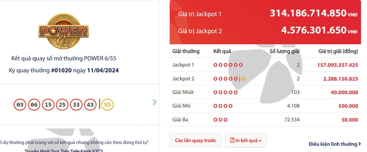 Hai khách hàng trúng Vietlott cùng chia đôi 314 tỉ đồng