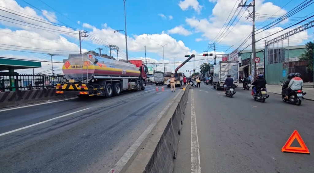 Thông tin bất ngờ vụ đèn tín hiệu từ xanh chuyển sang đỏ ‘đột ngột’ khiến xe đầu kéo thắng gấp đổ sắt ra đường